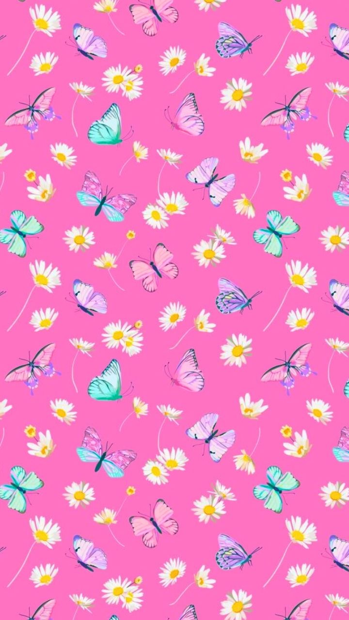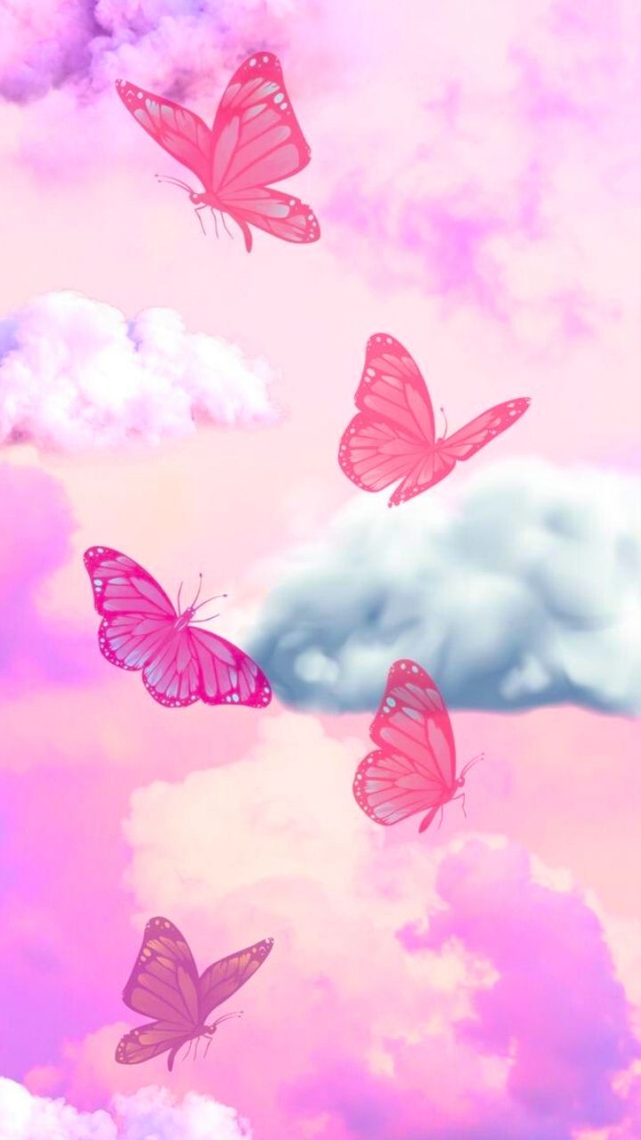 Pastel and Pink Butterfly Wallpaper